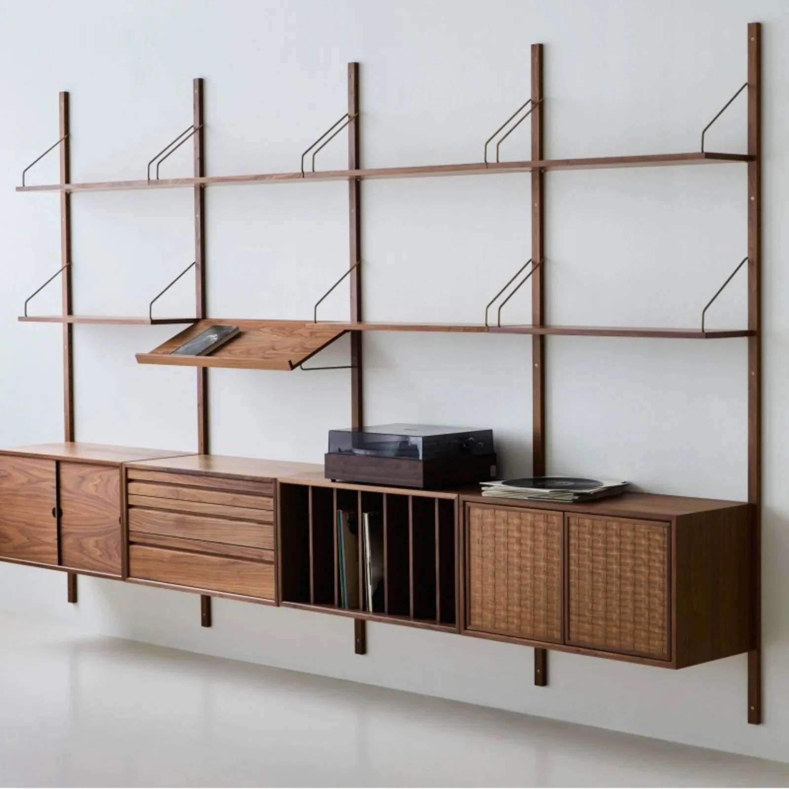 Our design was deeply influenced by the Royal System™ by Danish designer Poul Cadovius, one of the earliest wall-mounted modular shelving systems that blurred the line between furniture and architecture.